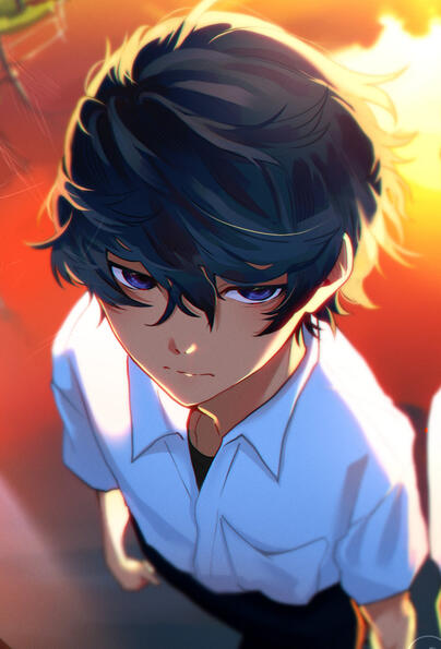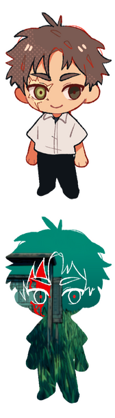 Yosae’s name roughly reads into the meaning of 'yosei' - "a bewitching spirit" and Hitokawa which can be read composed of "hito" (人), meaning "person" and "kawa" which can be read as "river" or “part”...but more importantly "皮" can be read as "skin" or metaphorically meaning mask. Hitokawa can be read as “Unmasking”. His name is misread throughout the story, Yosae’s real name is never revealed, his name is a mess of common words. .Yosae is a bright and adventurous personality, while he tends to act as if he has nothing to hide, his words and actions are often seeped in secrecy and mystery. His gaze is strong and unwavering but oddly inhuman, as if it can see right through most people. While friendly and likable, Yosae is unfiltered and blunt, able to call out peoples hidden intentions with ease, and often making enemies because of it.Often compared to a class clown, he never seems to take things seriously & lives unafraid of the world or his own actions. Yosae pulls Satoru along at a fast pace, unwilling to stop or hesitate when confronted by the others easily spooked and avoidant personality. In every sense the two of them are polar opposites.While Yosae will do everything to understand and solve the things around him, Satoru will do everything to keep his gaze pointed towards the ground.Yosae’s eyes unnerve many of the people he meets, he will make jokes about his scars but will not address them.