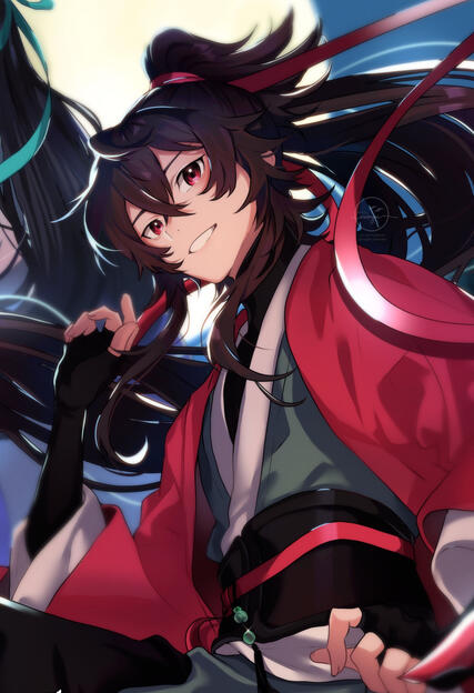 Clan & Sect: Mo Clan, Huahezong (Flower River Sect) 花河宗Mo Wenxuan has always been a charismatic, sly, and sharp person. Always wearing a smile and seemingly to not take anything serious, but behind that smile is a calculating and bold person.Mo Wenxuan always seems to be several steps ahead with a plan for everything, but tells nobody and chooses to bear the weight on his own. His flippant personality often times leads to others not trusting or relying on him, which is all a ruse to make sure he doesn't involve or harm unnecessary people.Mo Wenxuan can be very childish, but at times seems very lonely.